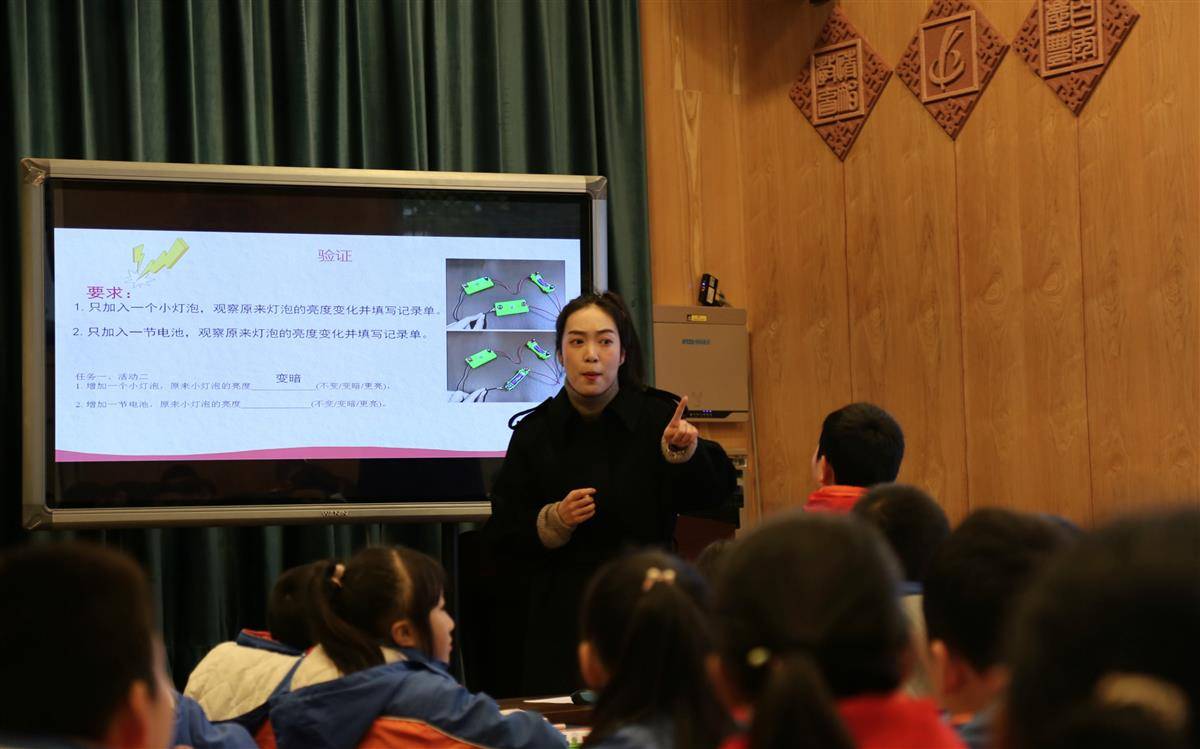 花都小学科学老师张利珺作为一名入职一年半的年轻老师,在师父袁丽老师和庆丰街小学、花都小学科学组老师们的倾力指导下,为全区科学老师呈现了一堂极具科学特色的先行课:巧设“活动大比拼”获得智慧小灯泡的评价方式不断激发学生的探究兴趣,采用PLB学习,通过“初解电路暗箱——观察小灯泡现象——寻找线索,推测,再解暗箱”三个逻辑递进的主活动,助推学生科学思维进阶。在课堂中,学生经历了观察、动手操作、讨论等活动,并在张老师追问、转问、互问等引导方式下开展深度学习。据悉,这也是花都自建校以来,首个在区级先行课亮相的学科,张老师扎实的专业基本功,流畅的教学设计,精彩的课堂演绎赢得老师们的一致肯定。