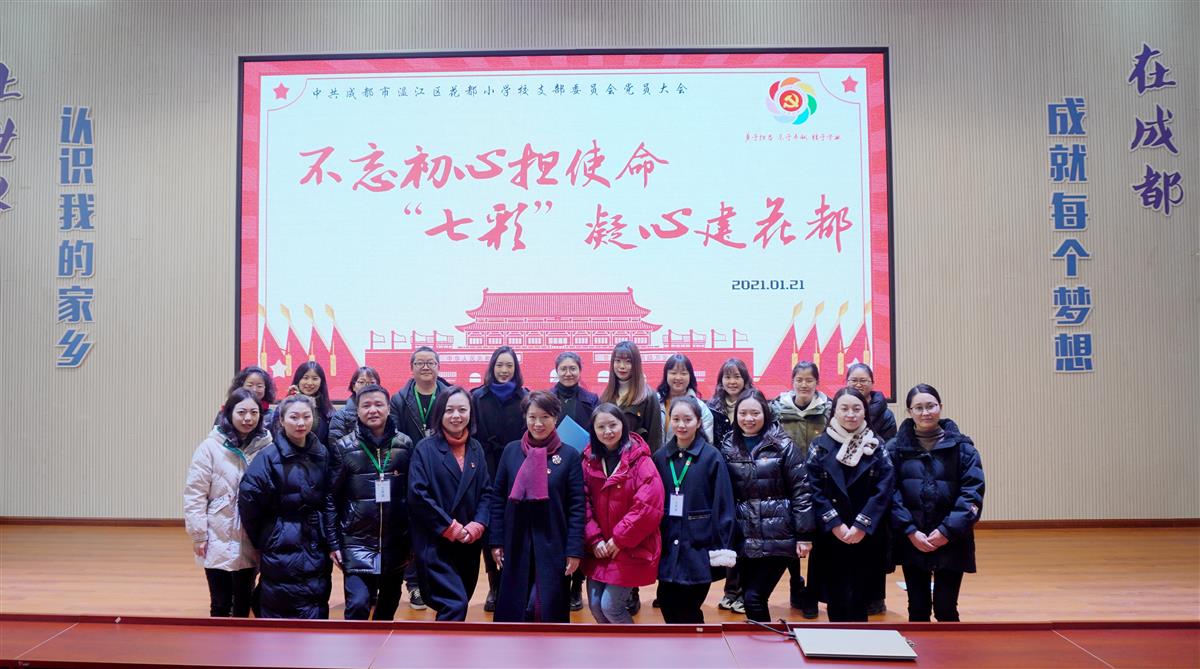 2021年1月21日上午九点三十分,所有教师在花都小学校报告会议厅举行了“不忘初心担使命 七彩凝心建花都”主题党员大会暨2020年度党建工作总结会。
