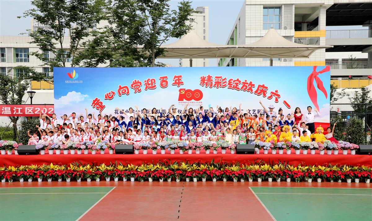 为庆祝中国共产党建党100周年,进一步培养儿童、青少年爱党爱国的情操,引导他们从小听党话,感恩党跟党走,厚植爱党爱国、爱社会主义的情怀,温江区花都小学校于2021年5月31日举行“童心向党迎百年,精彩绽放庆六一”为主题的少先队新队员入队仪式暨第二届“知夏艺术节”文艺展演活动。花都小学支部书记、校长刘秀荣为活动致辞。