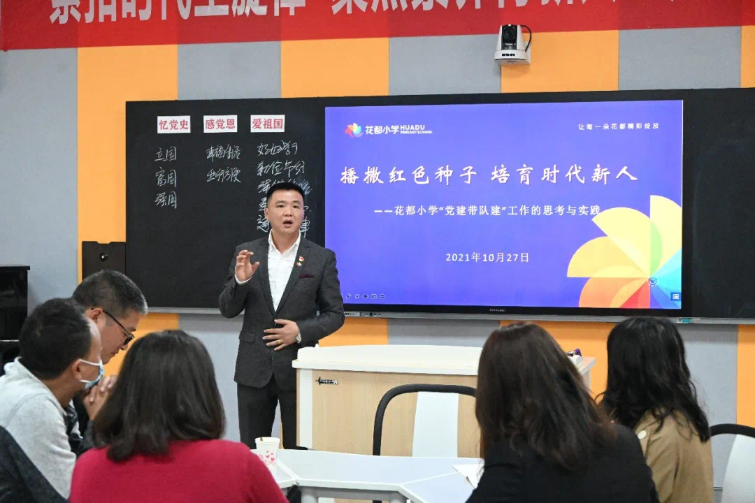 在交流分享环节,我校德育副校长范泽洪结合习近平总书记关于少年儿童和少先队工作等重要指示精神,以《播撒红色种子,培育时代新人》为主题,代表学校分享了“党建带队建”工作的思考与实践。
