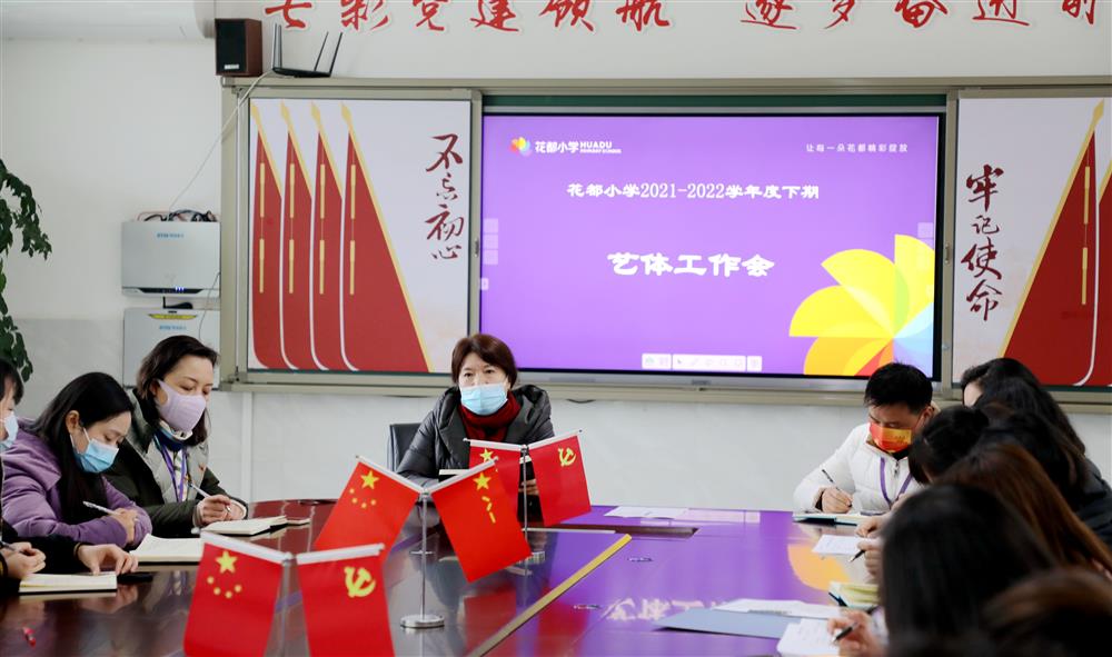 教学质量是学校的生命线,艺体工作则是要在保证生命线的前提下,进一步为学校添砖加瓦,为学校争得更多荣誉,办好每一次活动。在“双减”背景下,为促进每个学生健康快乐成长,构建教育新生态,提高我校艺体工作的质量,丰富学生艺体活动,确保学生全面发展,2022年2月25日,温江区花都小学校艺体工作会议顺利召开。