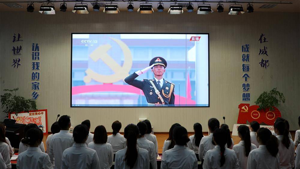 上午834分, 习近平总书记发表“七一”重要讲话,代表党和人民庄严宣告,经过全党全国各族人民持续奋斗,中国实现了第一个百年奋斗目标。在长达55分钟的讲话中,每每讲到动情处,观看现场不时响起老师们自发的、雷鸣般的掌声!这掌声经久不息,表达了全体教师对国家的认同和民族的自豪。不少教师都热泪盈眶,感慨作为中国青年,何其幸运生于华夏,何其幸运身为党员,何其幸运能为中华崛起贡献自己力量!