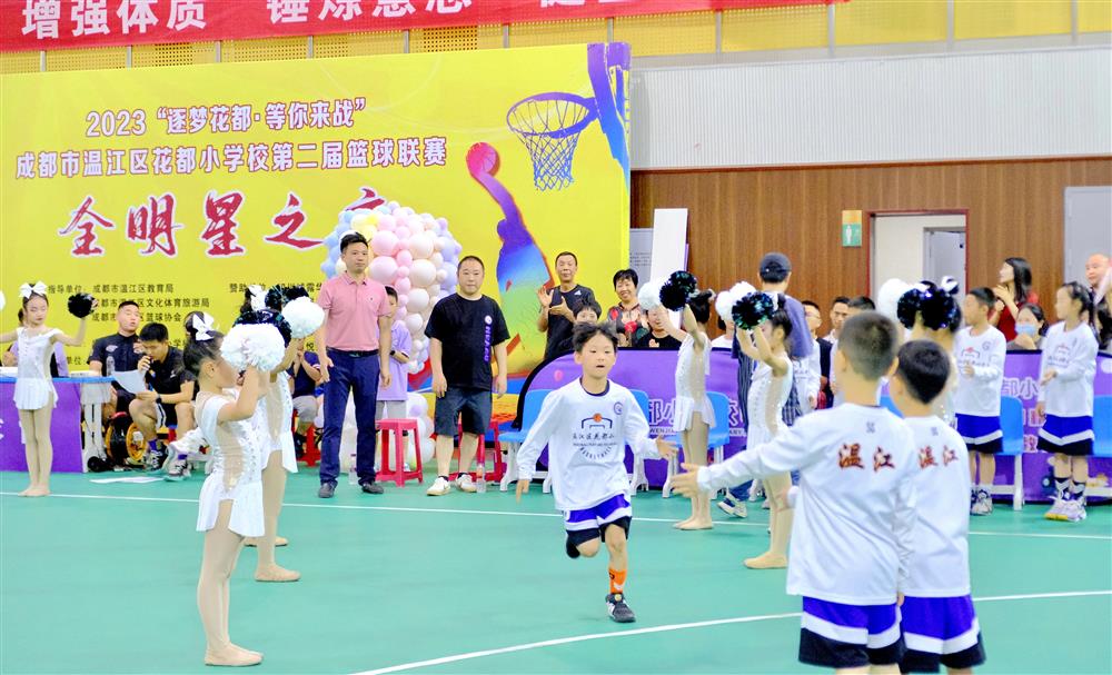 2023年61日晚6:00整,2023“爱成都·迎大运”“逐梦花都·等你来战”花都小学第二届校园篮球联赛“全明星之夜”暨颁奖典礼在学校藏冬体育馆隆重举行。成都市温江区文体旅局马小宾、温江区校际走课联盟学校代表、本次“全明星赛”赞助单位代表以及120余名花都小学优秀篮球队员、家长代表等约400余人一起齐聚花都,共同参与一场关于“专注 热情 奋斗 成长”的篮球盛会。