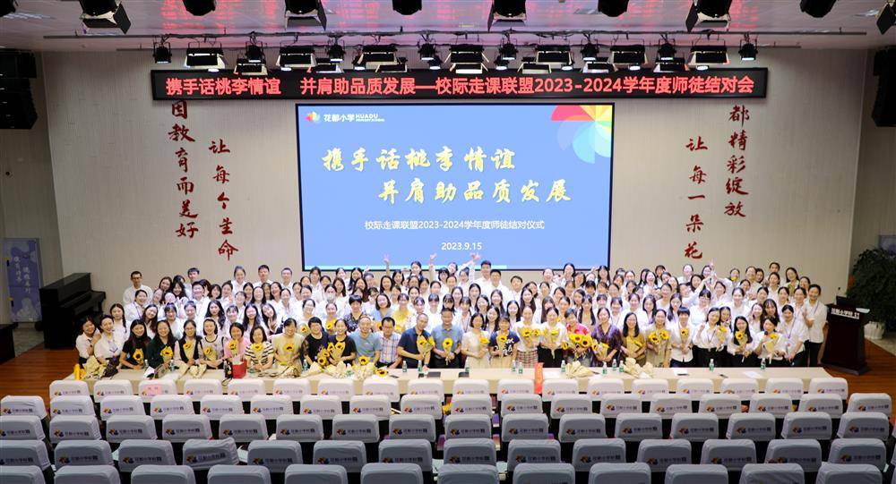 2023年9月15日,2023-2024学年度“温江区校际走课联盟”师徒结对会在花都“蒲公英”报告厅顺利召开。来自温江区东大街第一小学校、温江区庆丰街小学校以及温江区花都小学校的44名优骨干教师担任了花都小学150名青年教师的学科指导师;东大街一小周敏、庆丰街小学方万强被聘为“校际走课联盟”学科培训师。花都小学校校长刘秀荣、东大街第一小学校校长鄢光文、庆丰街小学校校长张春田全程参与了本次师徒结对会,为校际走课联盟的指导师、培训师颁发聘书。