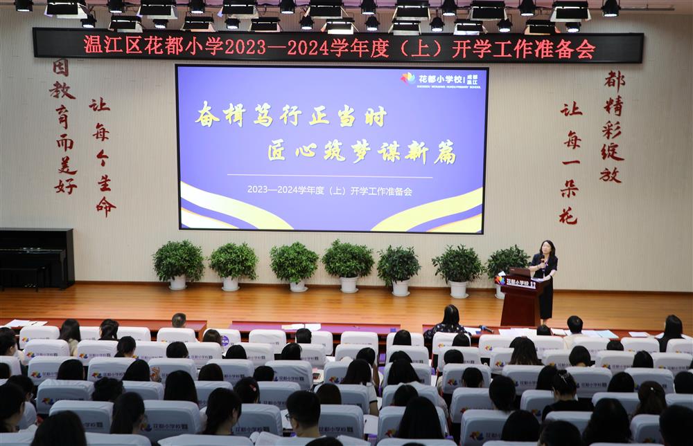 绚烂不止今夏,远梦始于新秋。暑往秋至,新程开启,为更好地统筹和安排新学期的各项准备工作,精心谋划开局新篇,2023年8月25日上午,花都小学以“奋楫笃行正当时 匠心筑梦谋新篇”为主题,召开了2023—2024学年上期新学期开学工作准备会。会议由教学副校长黄萍主持,刘秀荣校长作学期开学总动员。