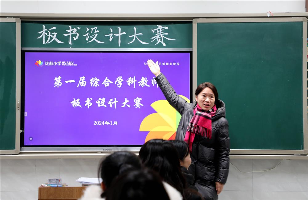 为进一步夯实花都小学综合学科教师教学基本功,提高教师板书设计能力,增强课堂教学的有效性,2024年1月19日上午,花都小学进行了第一届综合学科教师板书设计大赛活动。旨在通过本次活动以赛促学,以赛促教,提升专业队伍建设,助推自我成长,为发展赋能。