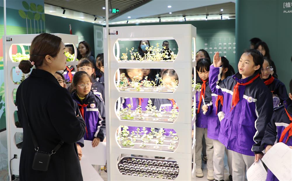 “锄禾日当午,汗滴禾下土。”科技真的太酷了!无土栽培技术的智能化设备让种子在没有土壤和阳光的情况下也能生根发芽,茁壮成长。从科学课中的立体小菜园再到眼前的现代化立体农业装置,大家无不感慨科技对农业带来的巨大帮助。