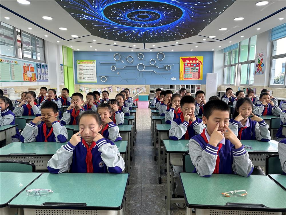 比赛中,同学们展现出了极高的热情和专注度。他们一个个轻闭双眼,集中精神,随着眼保健操的音乐节奏,准确而有力地按揉眼部穴位。每一个动作都显得那么认真、那么规范,仿佛在用实际行动诠释着对眼睛健康的重视。